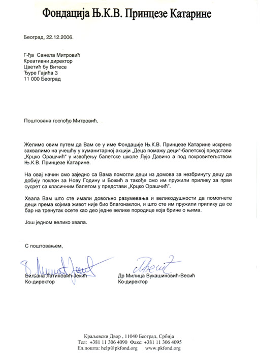Press: Kraljevski dvor - Zahvalnica